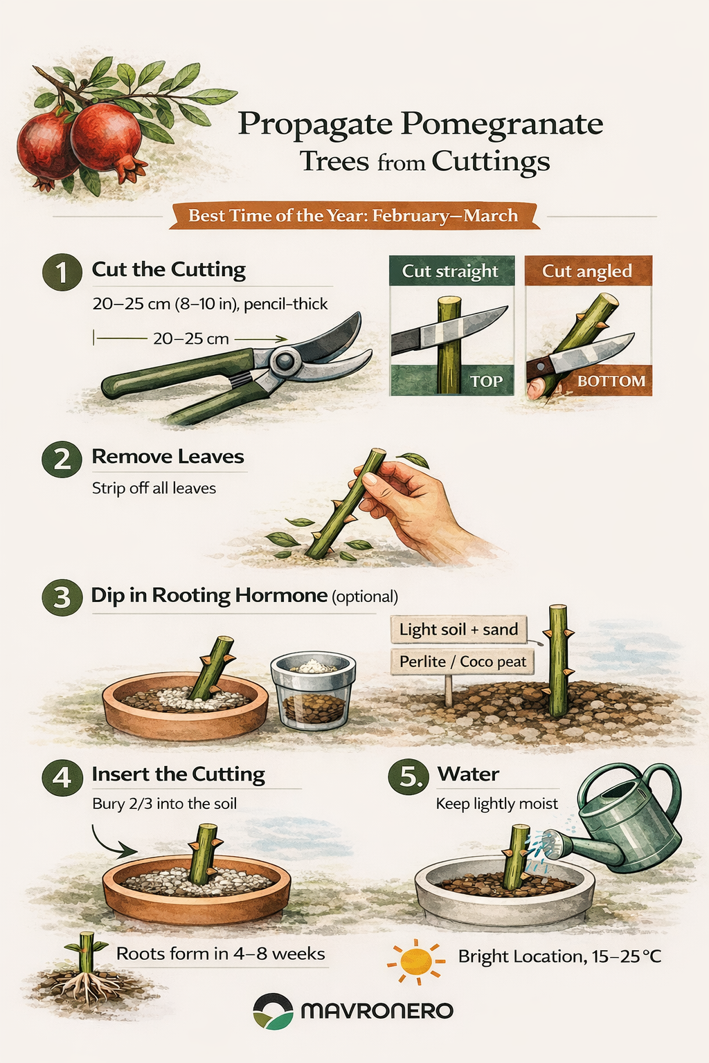 The best time to propagate pomegranate trees is between February and March, when the plant is still dormant but preparing to awaken. Cuttings taken during this period contain stored energy that supports root development once placed in the soil.